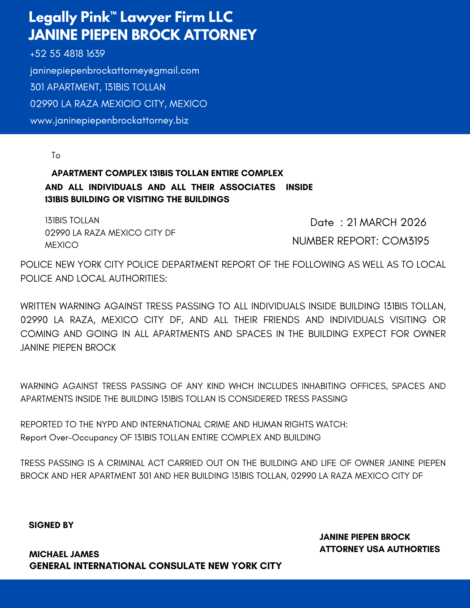 NOTICE ENTIRE COMPLEX APARTMENTS, 21 MARCH 2026